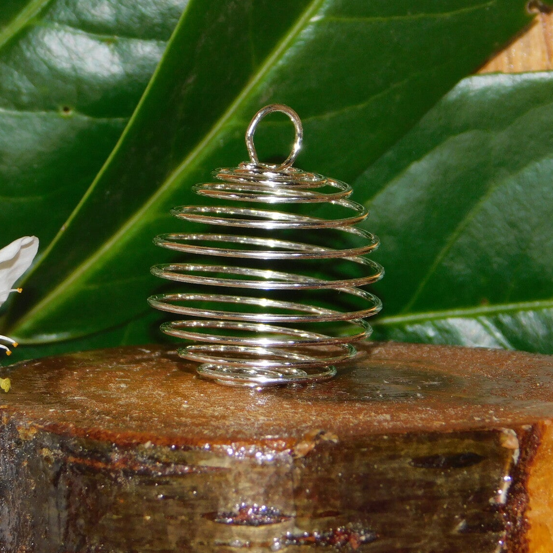 Zilverkleurige coil om een trommelsteentje in te doen en te gebruiken als hanger.