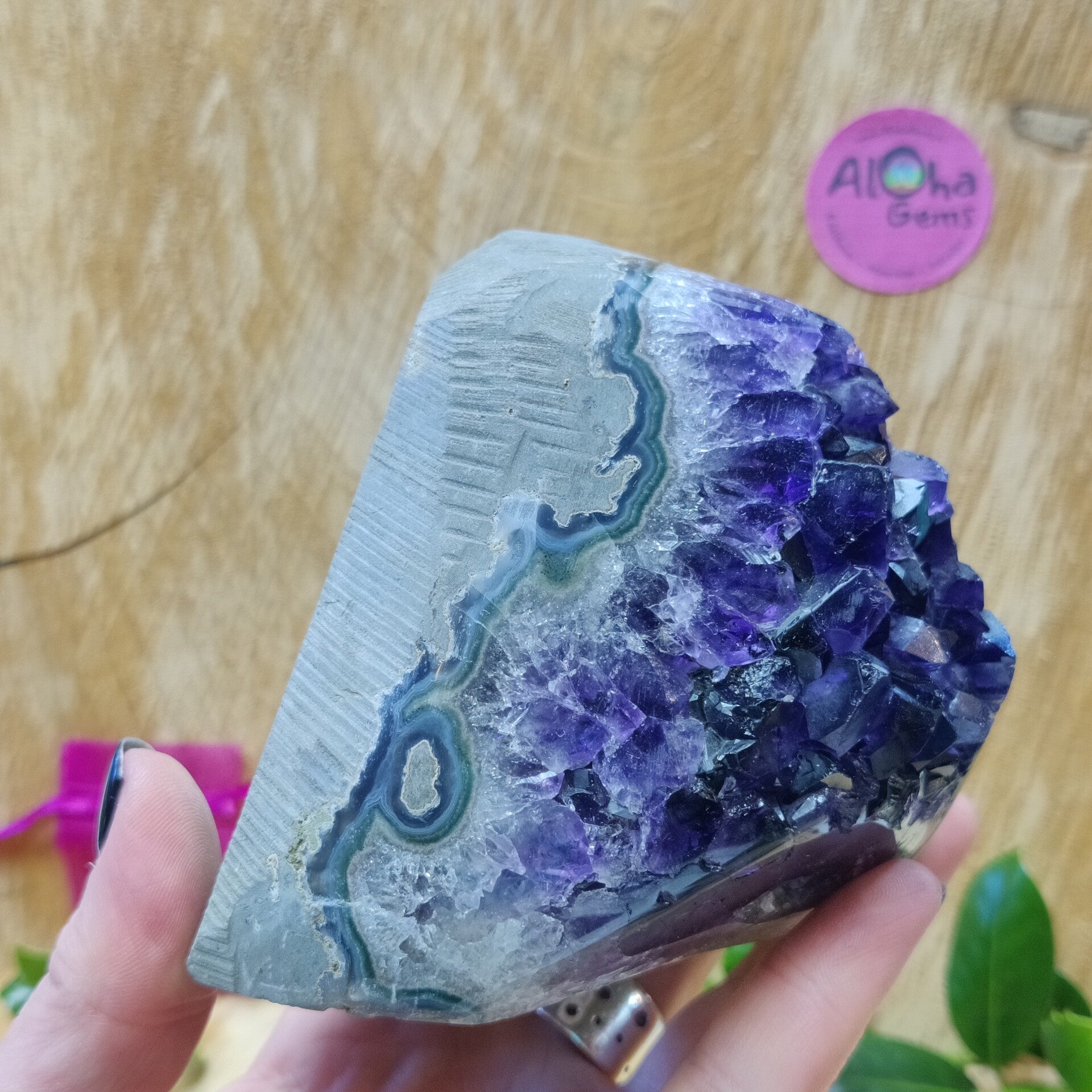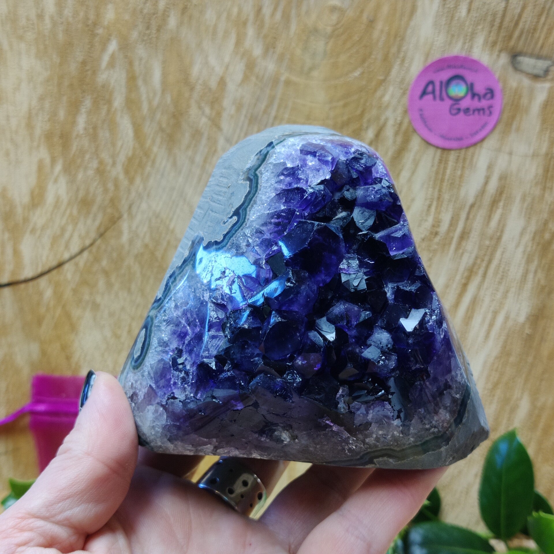 Spirituele werking: Amethyst creëert een veld met lichtenergie om zich heen die (wanneer de steen groot genoeg is) je aura of zelfs de ruimte kan reinigen. het kan de kruin en het derde oog openen waardoor de steen geschikt kan zijn voor mensen die hun intuïtie of spirituele vaardigheden verder willen ontwikkelen. Helpt met contact maken met hogere energieën en gidsen en is daarom een goede steen ter ondersteuning van meditatie.