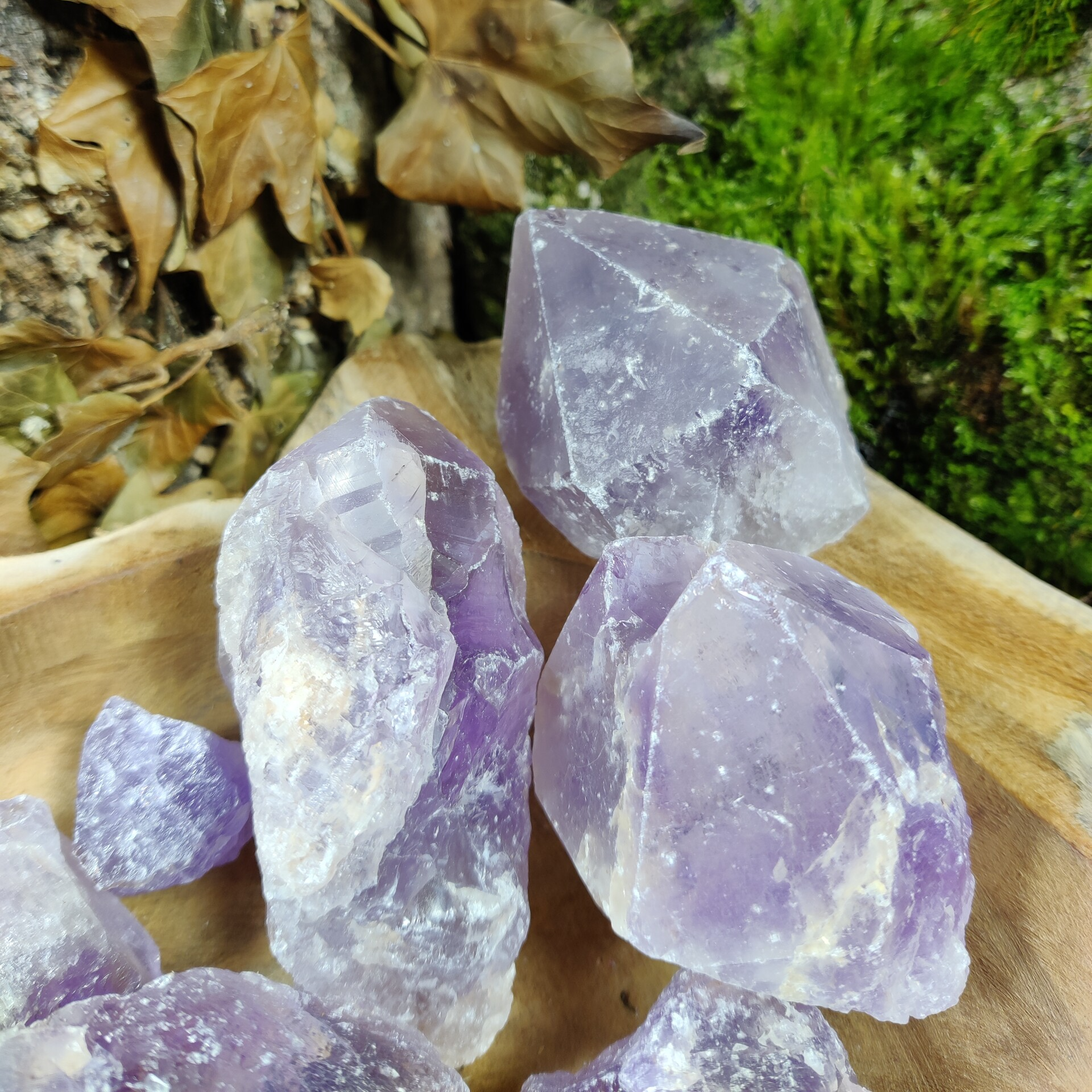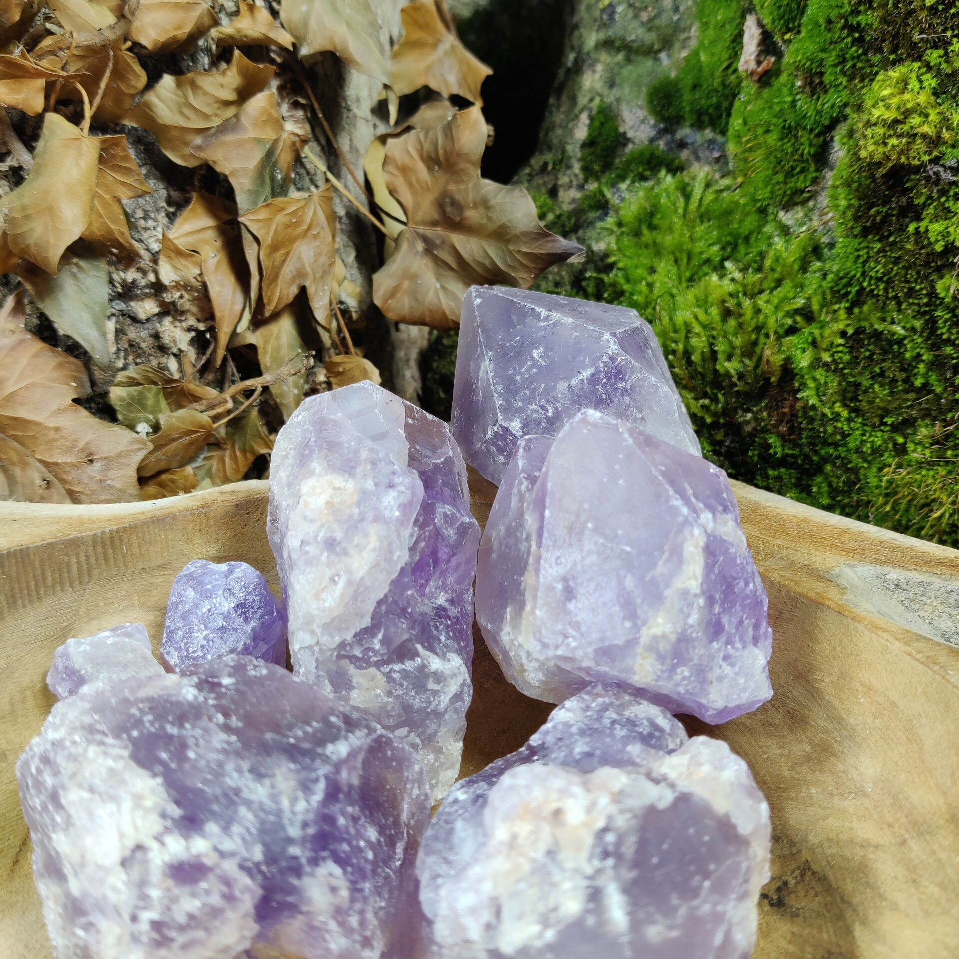 Spirituele werking: Amethyst creëert een veld met lichtenergie om zich heen die (wanneer de steen groot genoeg is) je aura of zelfs de ruimte kan reinigen. het kan de kruin en het derde oog openen waardoor de steen geschikt kan zijn voor mensen die hun intuïtie of spirituele vaardigheden verder willen ontwikkelen. Helpt met contact maken met hogere energieën en gidsen en is daarom een goede steen ter ondersteuning van meditatie.