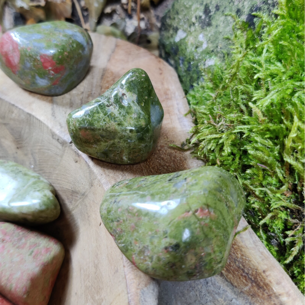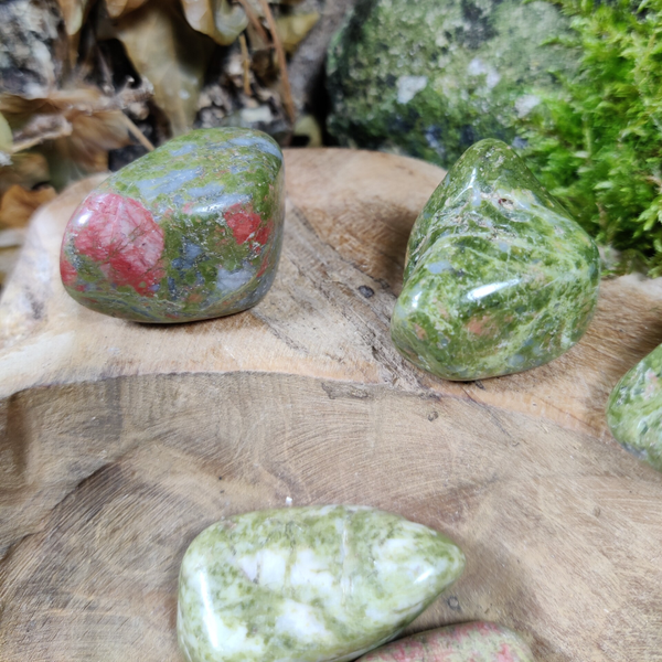 Lichamelijke werking:Unakiet is een sterk genezende steen en stimuleert het zelfgenezend vermogen van het lichaam na ziekte. Bevordert de conditie en versterkt vooral de lever en milt.Ook heeft unakiet een positieve invloed op de geslachtsorganen en bevordert zwangerschap. Unakiet is een beschermende steen en absorbeert elektromagnetische straling.
