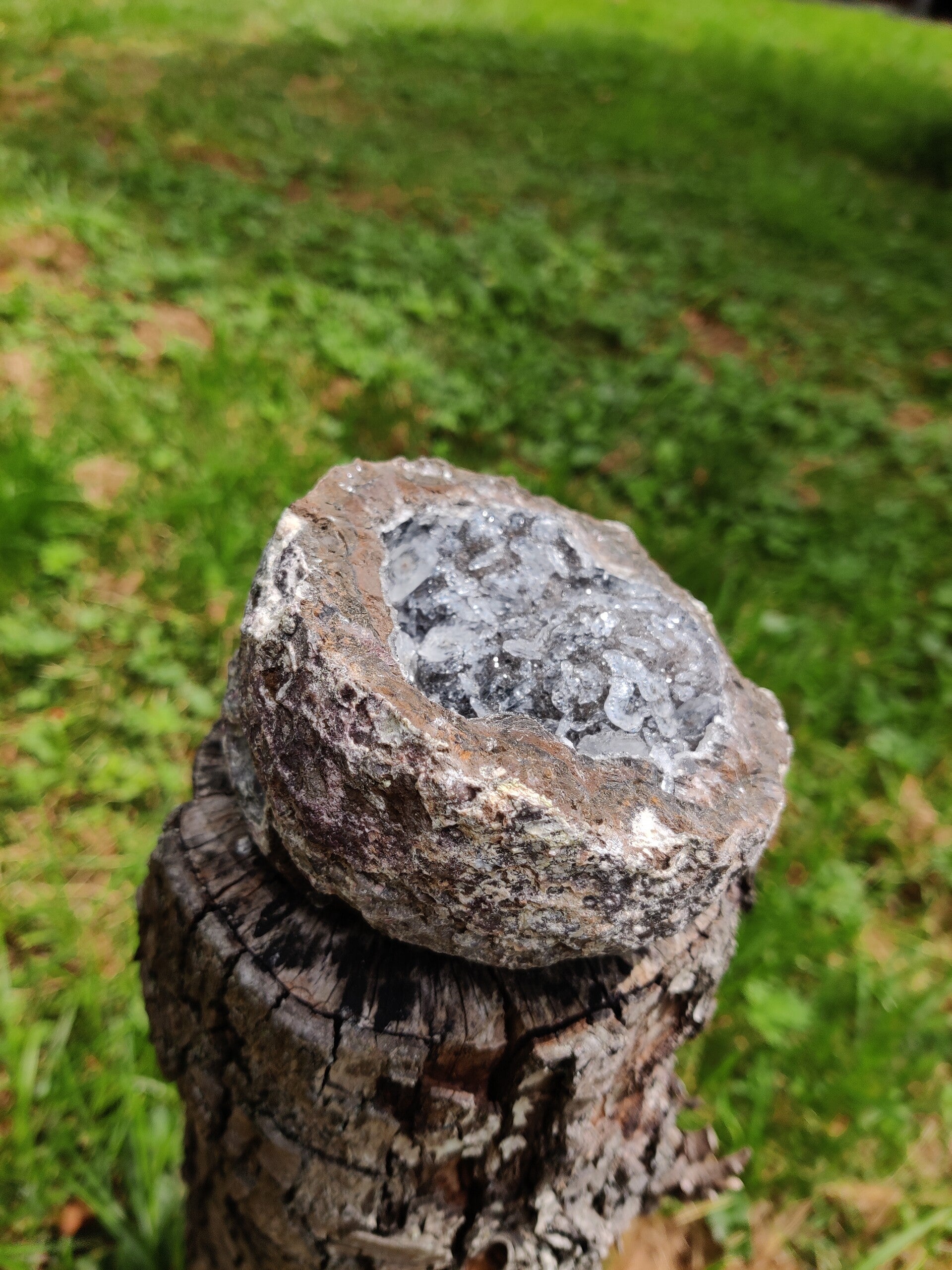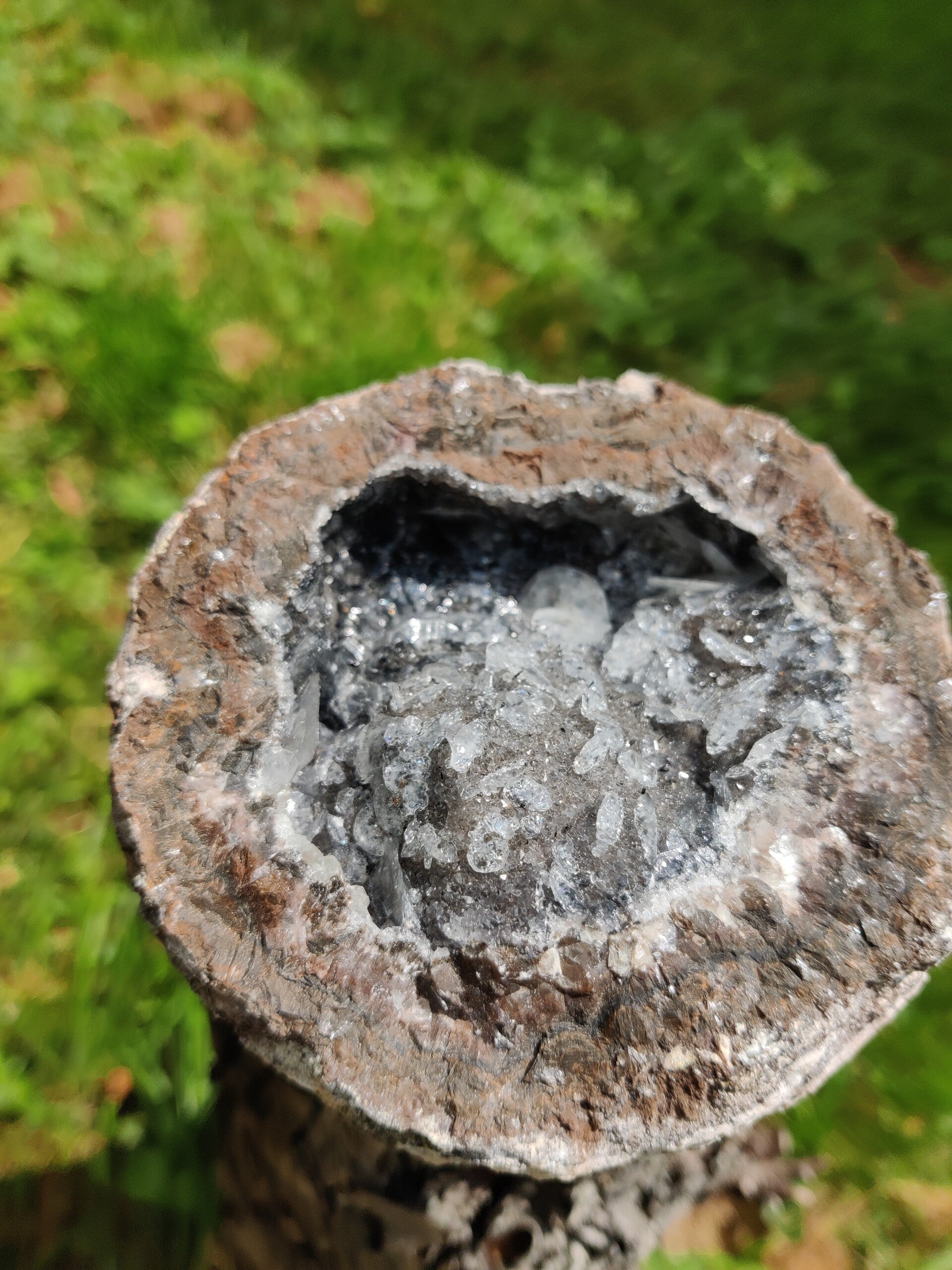 Prachtige geode met Galeniet uit Mexico, Dit exemplaar is ongeveer 10 bij 10 cm bij 6 cm en weegt 894 gram.