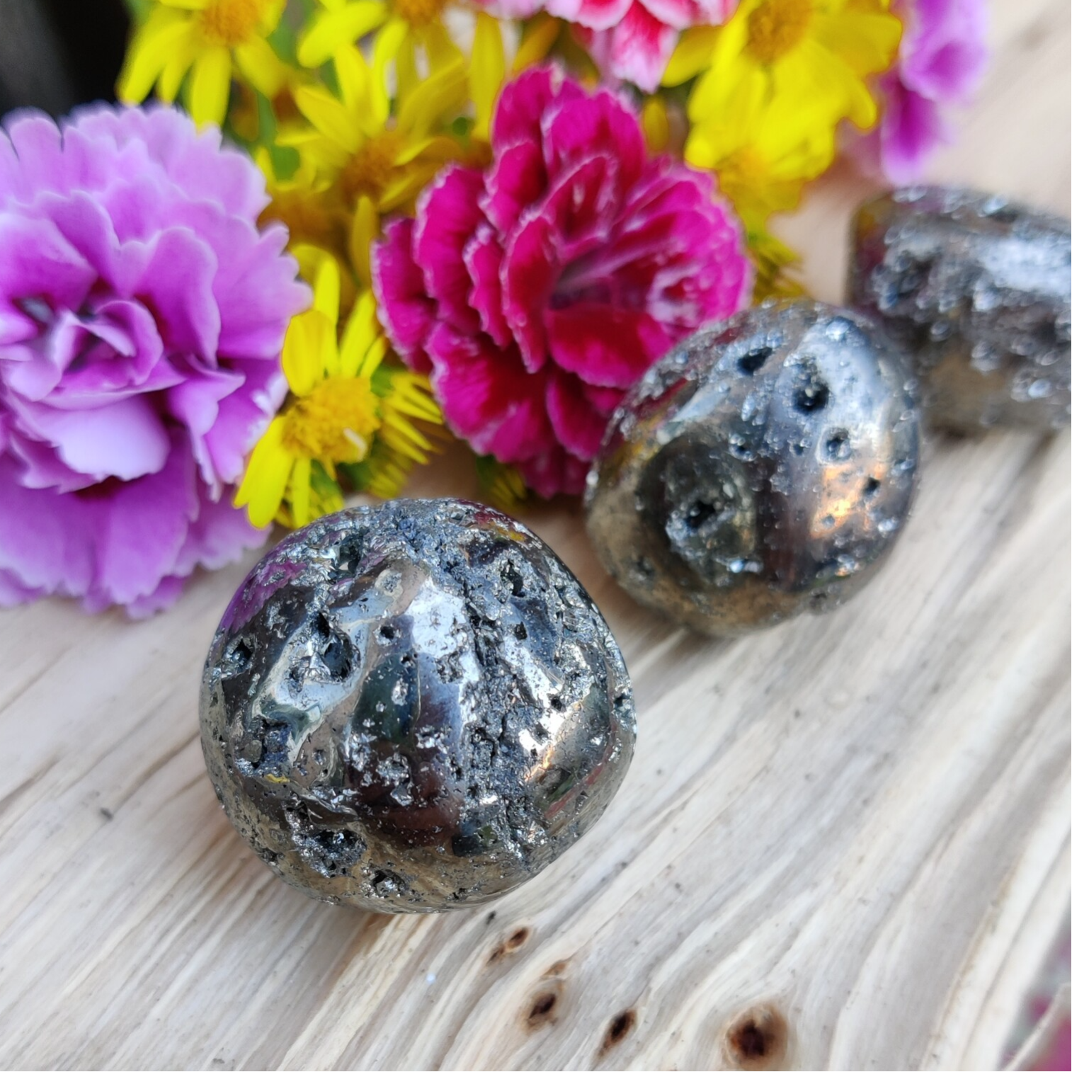 Prachtig trommelstenen van Pyriet uit peru. Afmeting van ongeveer 2 tot 3 cm