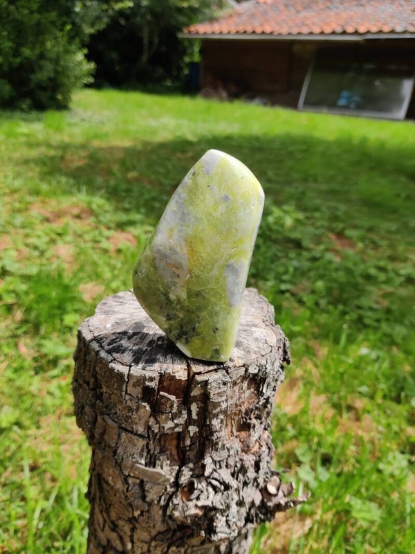 Prachtige vrije vorm sculptuur van groen Serpentijn.