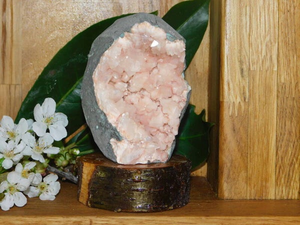 Prachtige Kwaliteit Geode Heulandiet van 526 gram, dit exemplaar is 9 x 6 x 6 cm.