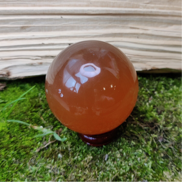 Prachtige bol van Oranje Calciet, Dit exemplaar is ongeveer 6,1 cm en weegt 326 gram.